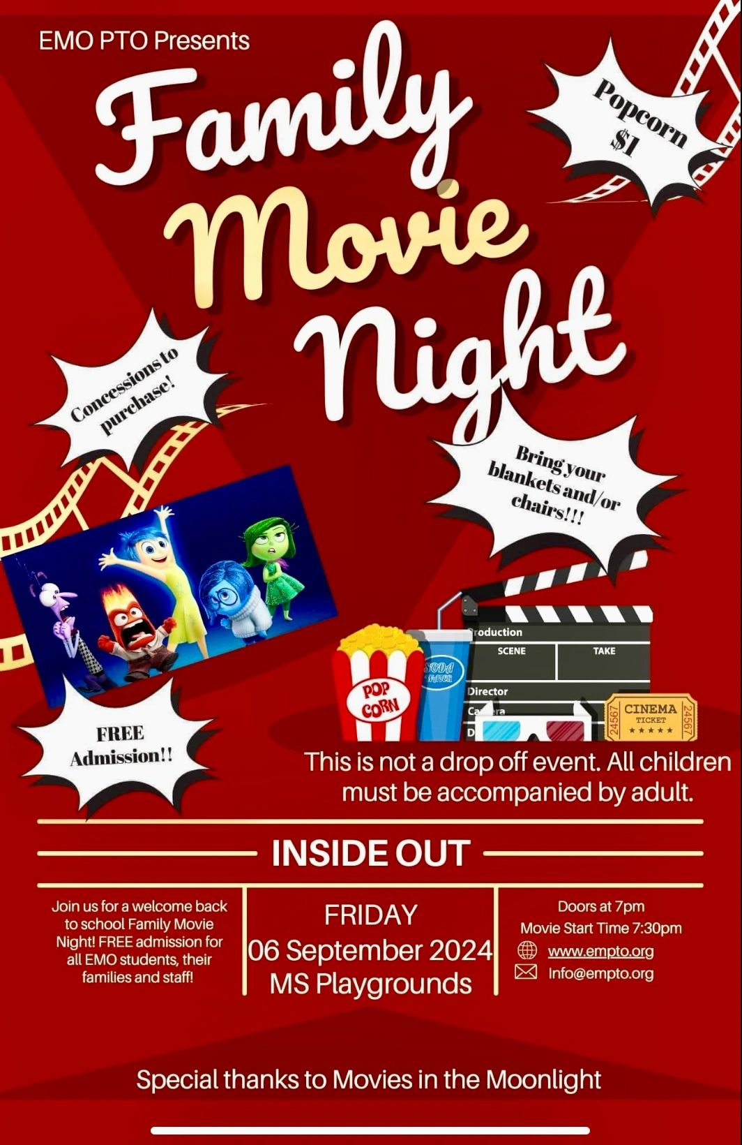 Come on down for a FREE Family Movie Night with your friends, family and staff! The movie being featured is “Inside Out.” This is not a drop off event. All children must be accompanied by an adult and concessions will be available for purchase.